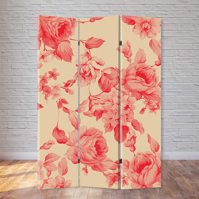 Ширма складається з трьох каркасів з натурального дерева та тканини з яскравим інтер'єрним друком, якою обтягуються каркаси.